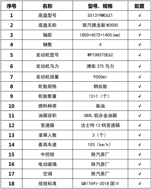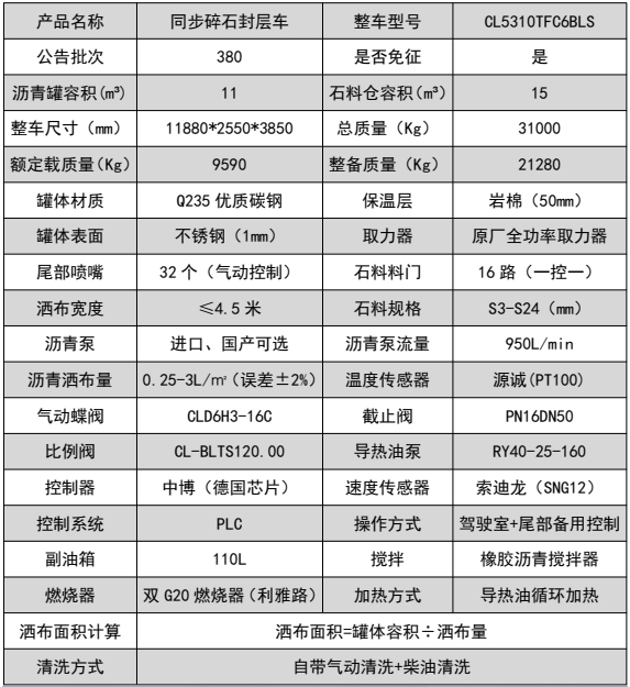 ??????湖北程力汽車:程力CL5310TFC6BLS型陜汽德龍前四后八瀝青碎石同步封層車產(chǎn)品型號(hào)及參數(shù)配置,程力CL5310TFC6BLS型陜汽德龍前四后八瀝青碎石同步封層車高清圖片,程力汽車系列程力CL5310TFC6BLS型陜汽德龍前四后八瀝青碎石同步封層車最新報(bào)價(jià)請(qǐng)撥打客服熱線。車輛主要配置 產(chǎn)品商標(biāo) 程力牌 公告批次 382(擴(kuò)展) 產(chǎn)品名稱 同步碎石封層車 產(chǎn)品型號(hào) CL5310TFC6BLS 總質(zhì)量(Kg) 31000 罐體容積(m3) 額定載質(zhì)量(Kg) 9590,9525 外形尺寸(mm) 11080,11280,11880 × 2550 × 385...